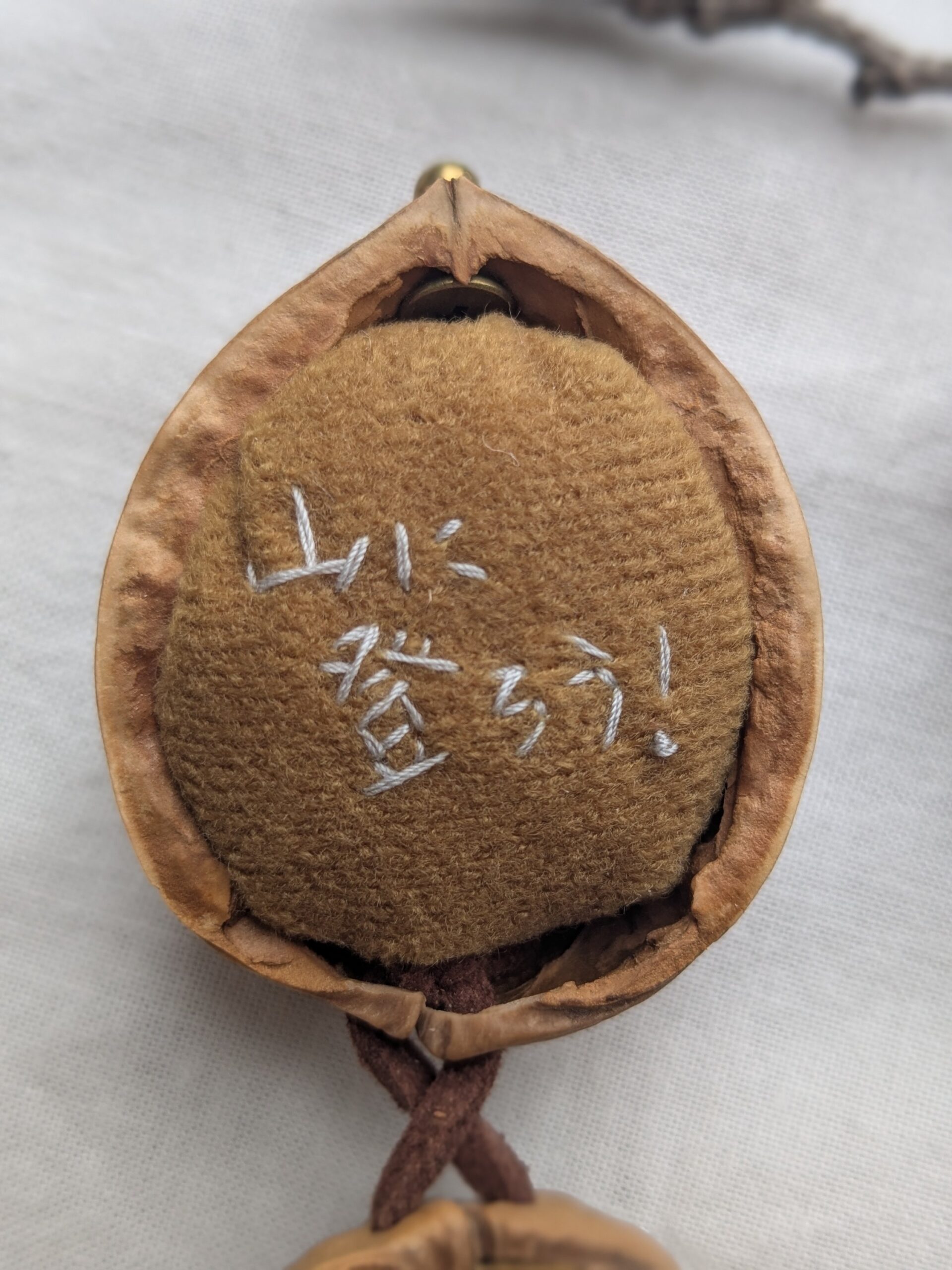中の布地には【山に登ろう!】と手縫いで刺繍がされています。